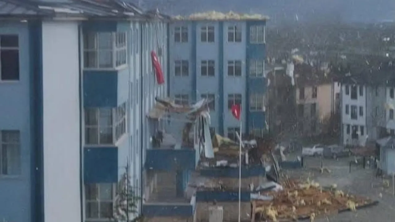 Düzce'de Bahçeşehir bölgesinde bulunan Atatürk Anadolu Lisesi'nin çatısının bir bölümü, kuvvetli rüzgârın etkisiyle yıkıldı.
