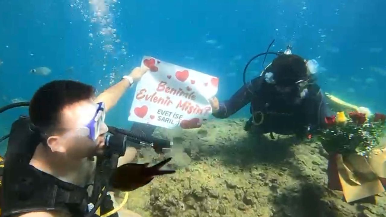 Alanya'da restoran müdürü olarak görev yapan Muhammet Akbıyık, uzun süre birlikte olduğu Ezgi Uysal'a sürpriz evlilik teklifi planladı. Çift, Okurcalar Mahallesi'ndeki dalış okulunun eğitmenleri eşliğinde denize tüplü dalış yaptı. Bu sırada Akbıyık, önceden hazırladığı 'Benimle evlenir misin' yazısının yer aldığı kağıdı açıp Uysal'a evlilik tekli yaptı. Teklifinin kabul edilmesinin ardından Akbıyık, Uysal'a yüzük taktı. Çiftin mutlu anları su altı kamerasıyla kaydedildi.