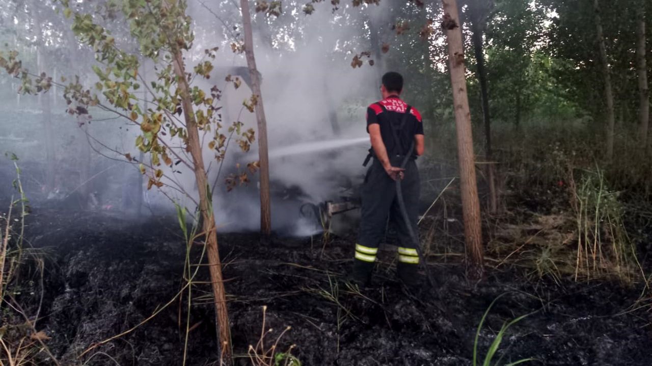 Elektrik aksamındaki arıza nedeniyle yanan traktör kullanılamaz hale geldi. Yangında, 5 dönüm arazi ve 10 ağaç yandı.