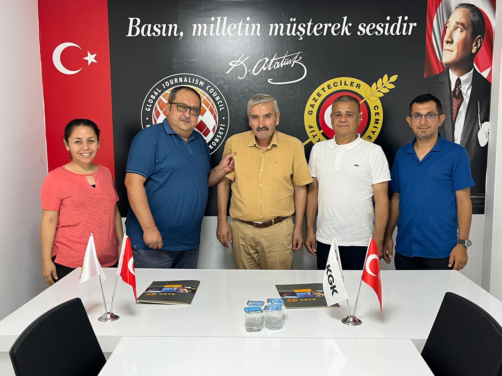 Alanya Aktif Gazeteciler Cemiyeti (ALGC) Başkanı Ferit Kesen, ALGC Başkan Yardımcısı Mesut İlhan, ALGC Genel Sekreteri Zeliha Oner, ALGC Yönetim Kurulu Üyesi Servet Ramazan Çolak, ALGC Onur Kurulu Üyesi Oğuz Korum ve ALGC Üyesi Mehmet Al, Zafer Partisi Alanya İlçe Başkanı olarak göreve başlayan Alper Arıkan'a 'Hayırlı olsun' ziyaretinde bulunarak başarı dilediler.